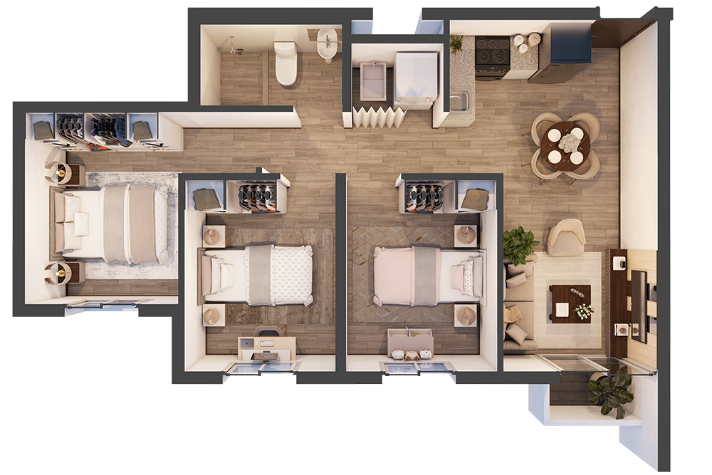 Tipos de apartamentos 59m2 y 64m2